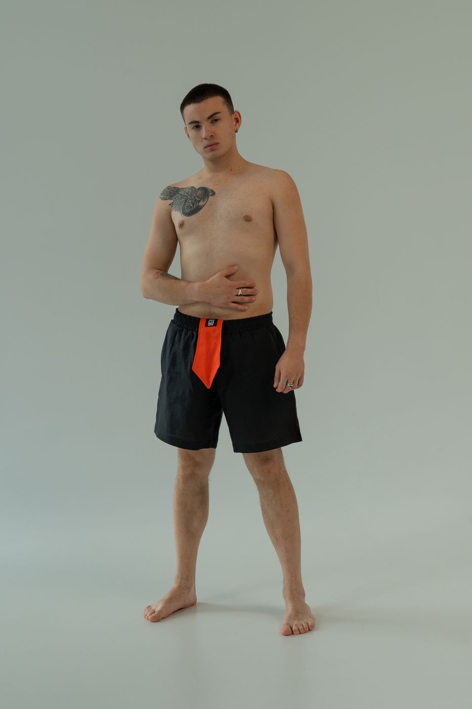 Стильні чоловічі боксери-шорти із конопель зі зйомною краваткою та карманами.